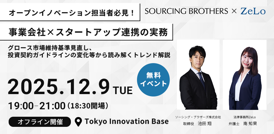 本イベントでは、これらの制度・市場動向を俯瞰しつつ、事業会社が押さえるべき実務のポイントを解説します。具体的には、投資実行前のデューデリジェンスの着眼点、条項交渉で揉めやすいポイントや実務における落としどころ、投資後ガバナンスの設計指針などを、現場のケースにもとづいてお話しします。